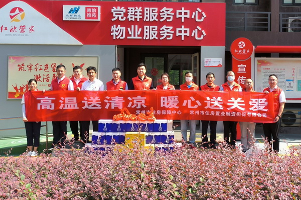 2022年8月3日至4日,常州市住房置業(yè)融資擔(dān)保有限公司與常州市住房保障中心共同在金安家園、青韻雅苑、金澤家園等6個(gè)集中保障房小區(qū)開(kāi)展“高溫送清涼暖心送關(guān)愛(ài)”活動(dòng)。